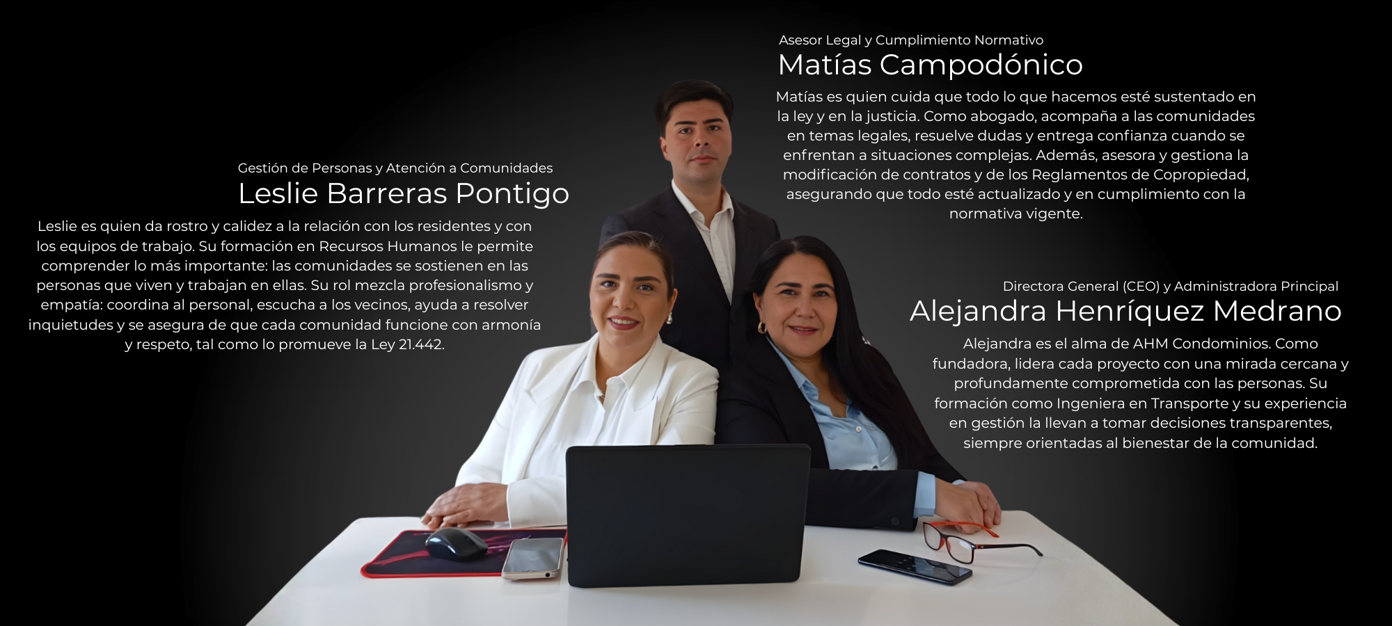 En AHM Condominios creemos que una buena administración nace del respeto, la transparencia y la convivencia armoniosa, valores que también inspiran la Ley 21.442. Por eso, detrás de cada edificio, cada comunidad y cada residente, hay un equipo de profesionales que trabaja con dedicación para que la vida en condominio sea más segura, ordenada y humana.